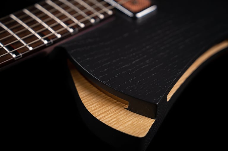 Our modular semi hollow body ensures a constant weight range and add to the sound harmonics and fine details.