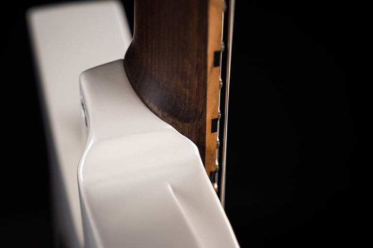 Our 2 point neck fastening is strong, long lasting and improves the access to the last part of the fingerboard.